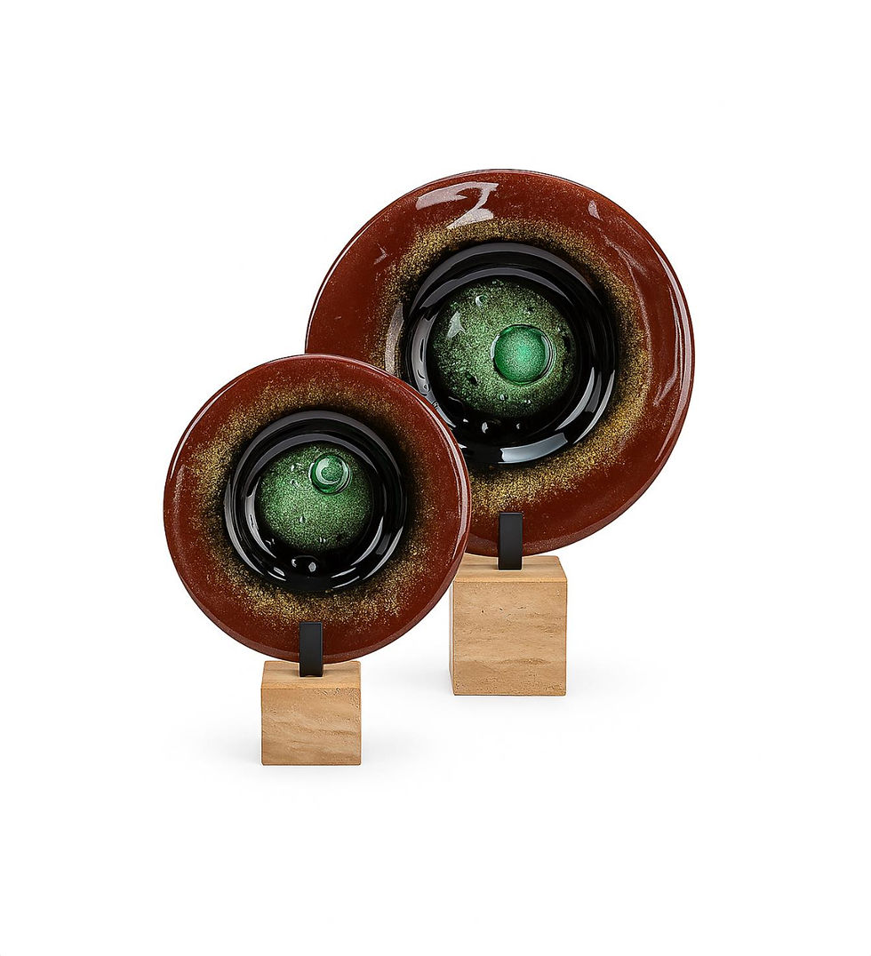 Yeşil Siyah Cam Disk Füzyon Obje İkili Set