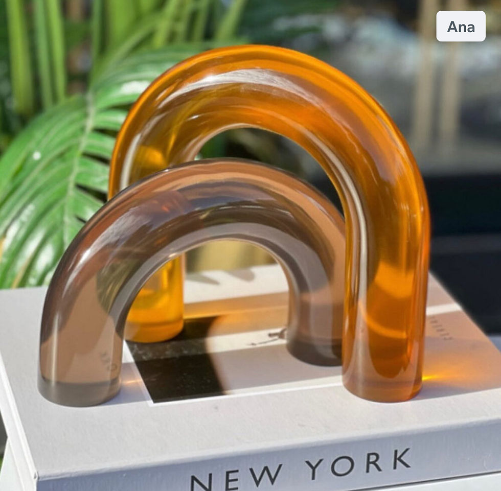 İkili Set Turuncu Vizon Cam Amorf Disk Obje